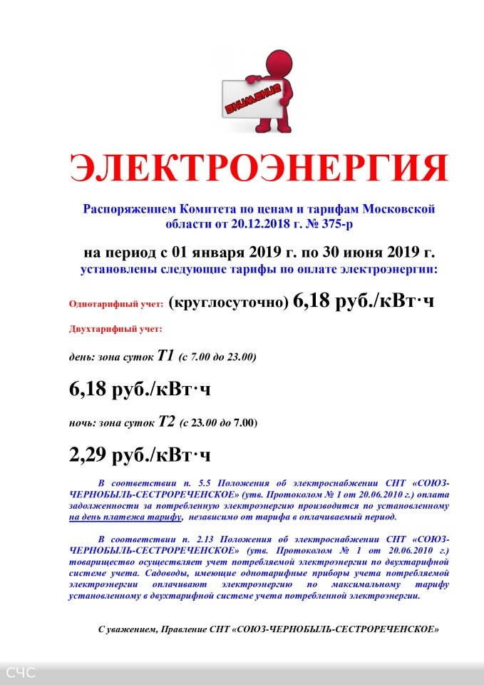 ОБЪЯВЛЕНИЕ О ЦЕНАХ (ТАРИФАХ) НА ЭЛЕКТРОЭНЕРГИЮ в 2019 г. (с 01.01.2019. по 30.06.2019)