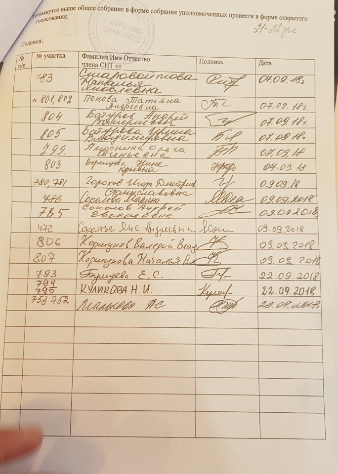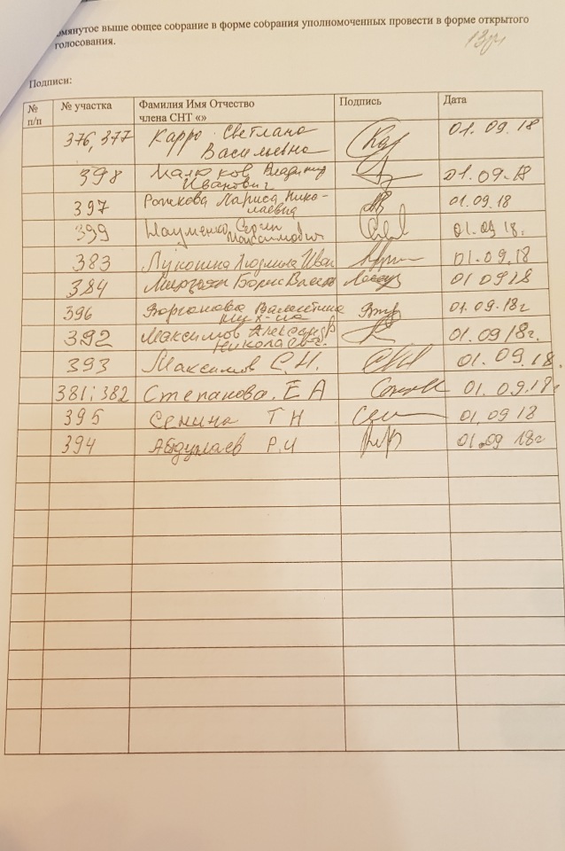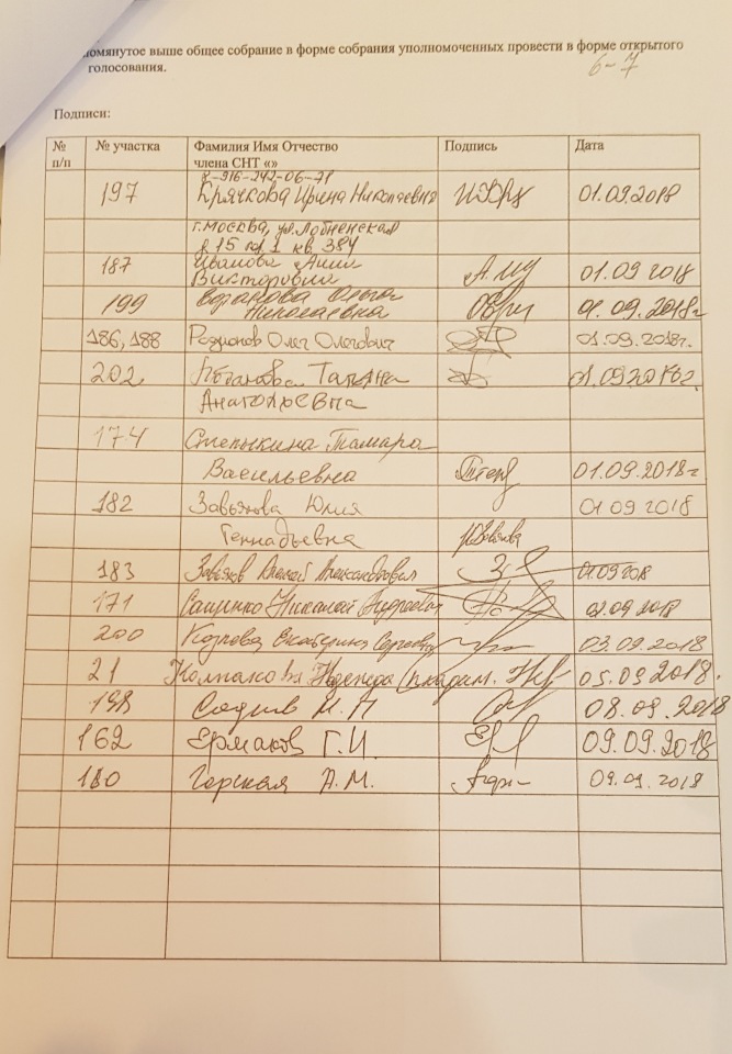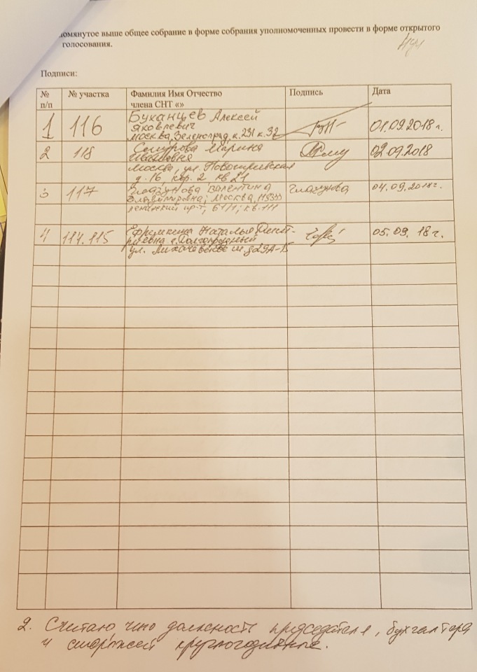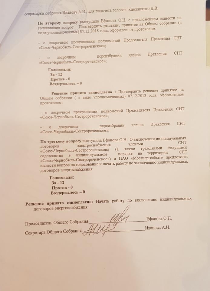 Решение садоводов, предоставленное Моргослеповым, по вопросу перевыбора Председателя: