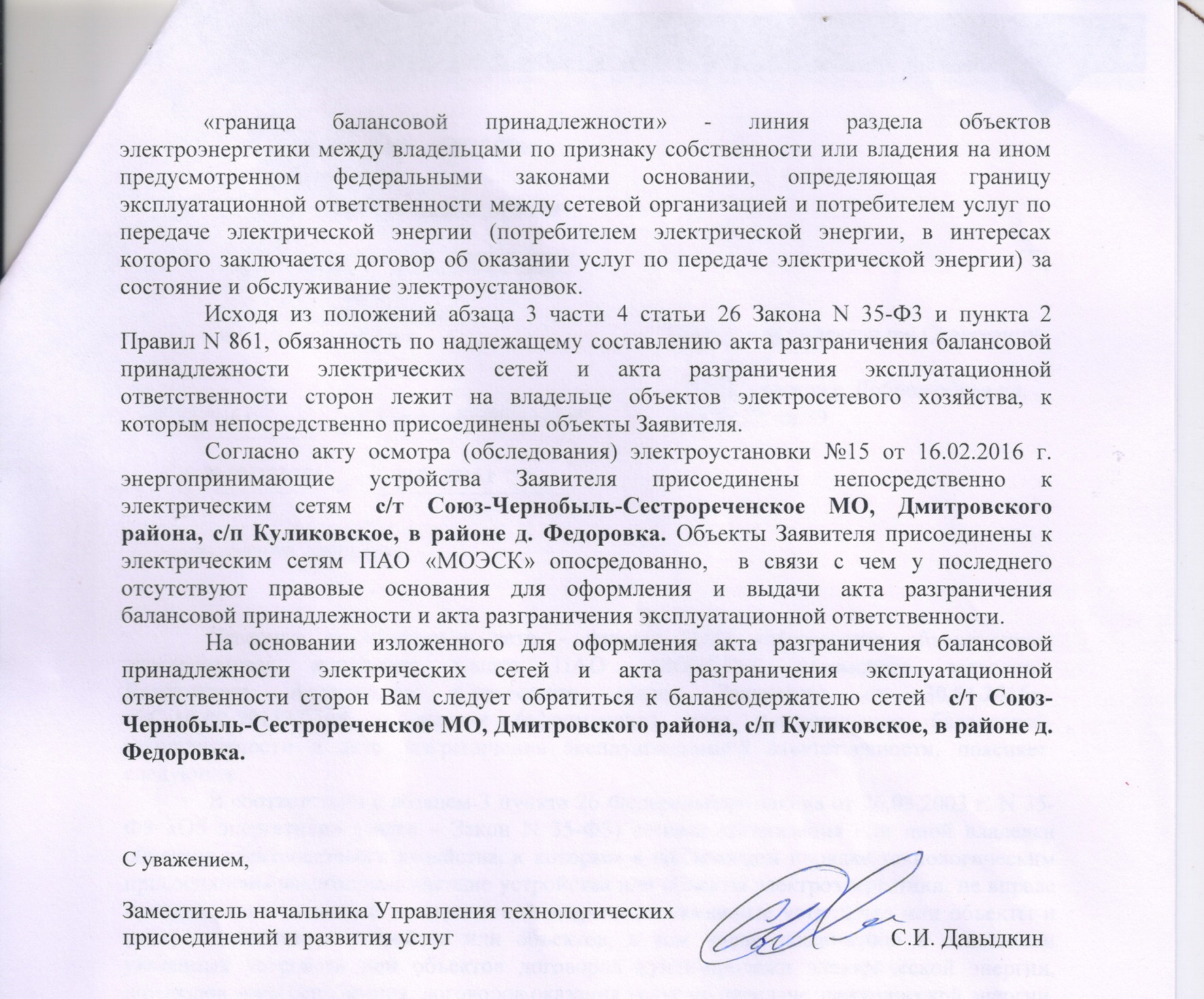 Однако сейчас, я получил вышеприведенный ответ от МОЭСК.