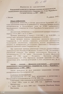 Re: ОТЧЕТ РЕВИЗИОННОЙ КОМИССИИ СНТ "СОЮЗ-ЧЕРНОБЫЛЬ-СЕСТРОРЕЧЕНСКОЕ" за 2007-2008 г.
