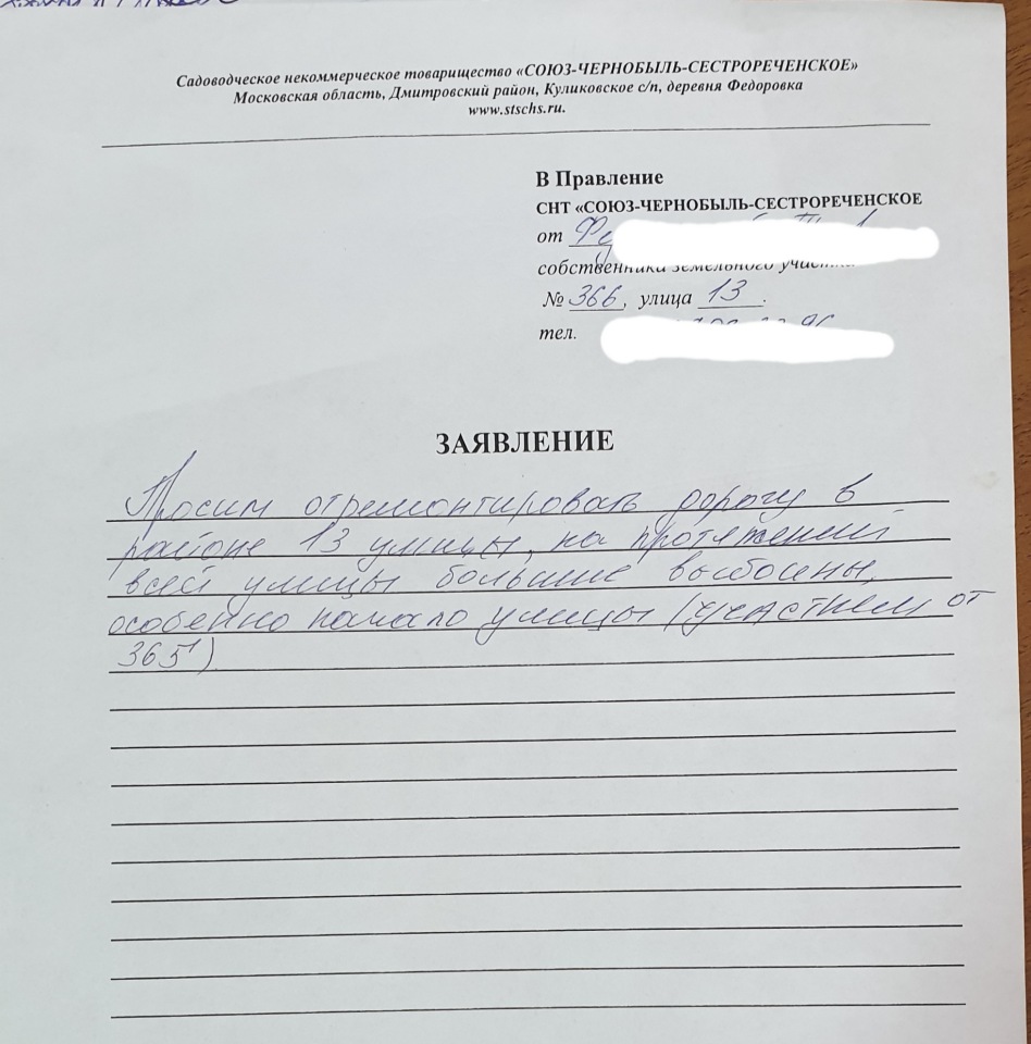 С уважением, Председатель СНТ "СОЮЗ-ЧЕРНОБЫЛЬ-СЕСТРОРЕЧЕНСКОЕ"