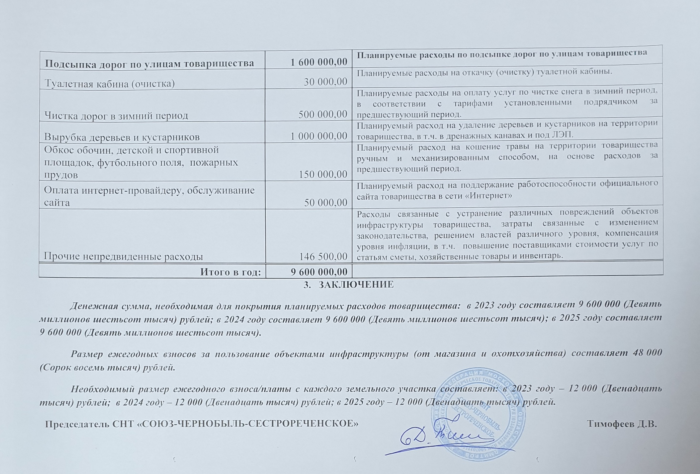 - Смета доходов и расходов СНТ "СОЮЗ-ЧЕРНОБЫЛЬ-СЕСТРОРЕЧЕНСКОЕ" № 2 на 2023-2025 г.г. (РАЗМЕР ЕЖЕГОДНОГО ВЗНОСА 12 000 руб.).