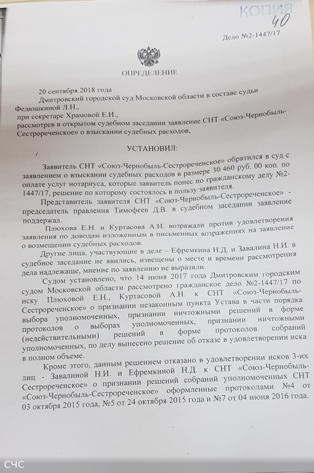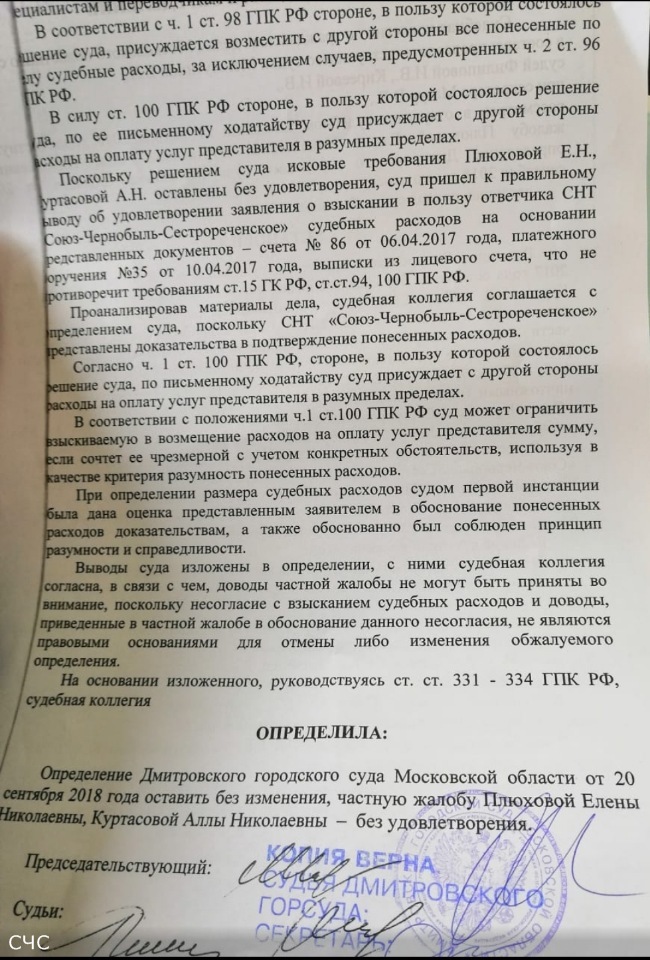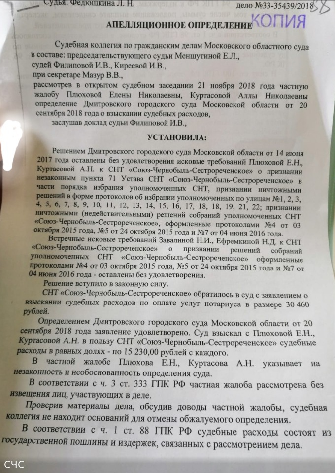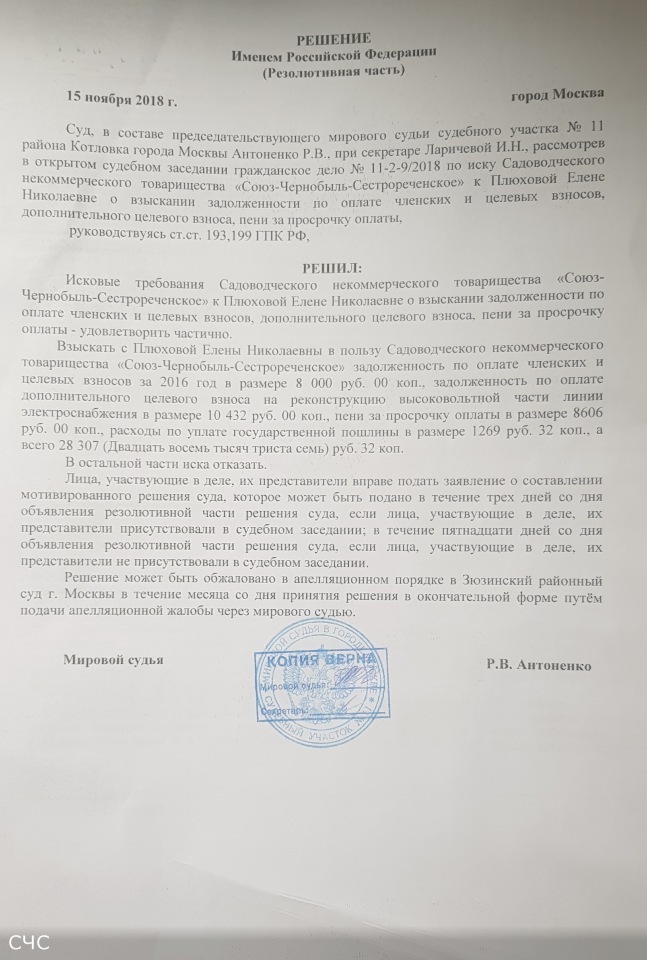 Обыкновенные садоводы-должники не исполняющие обязательство по оплате взносов товарищества. А в суд на товарищество такие обиженные садоводы подают исключительно после того, как только товарищество начинает взыскивать с них задолженность и лишь для того, чтобы отсрочить и/или исключить возможность взыскания. При этом им очень не нравится нести последствия своих действий по предъявлению всевозможного рода необоснованных исковhhh писал(а): 14 окт 2018, 10:09 Что это за личности такие плюхова и куртасова, ещё можно понять когда кто-то не платит и его в суд вызывает Товарищество, но когда ты сам на товарищество в суд подаёшь![]()