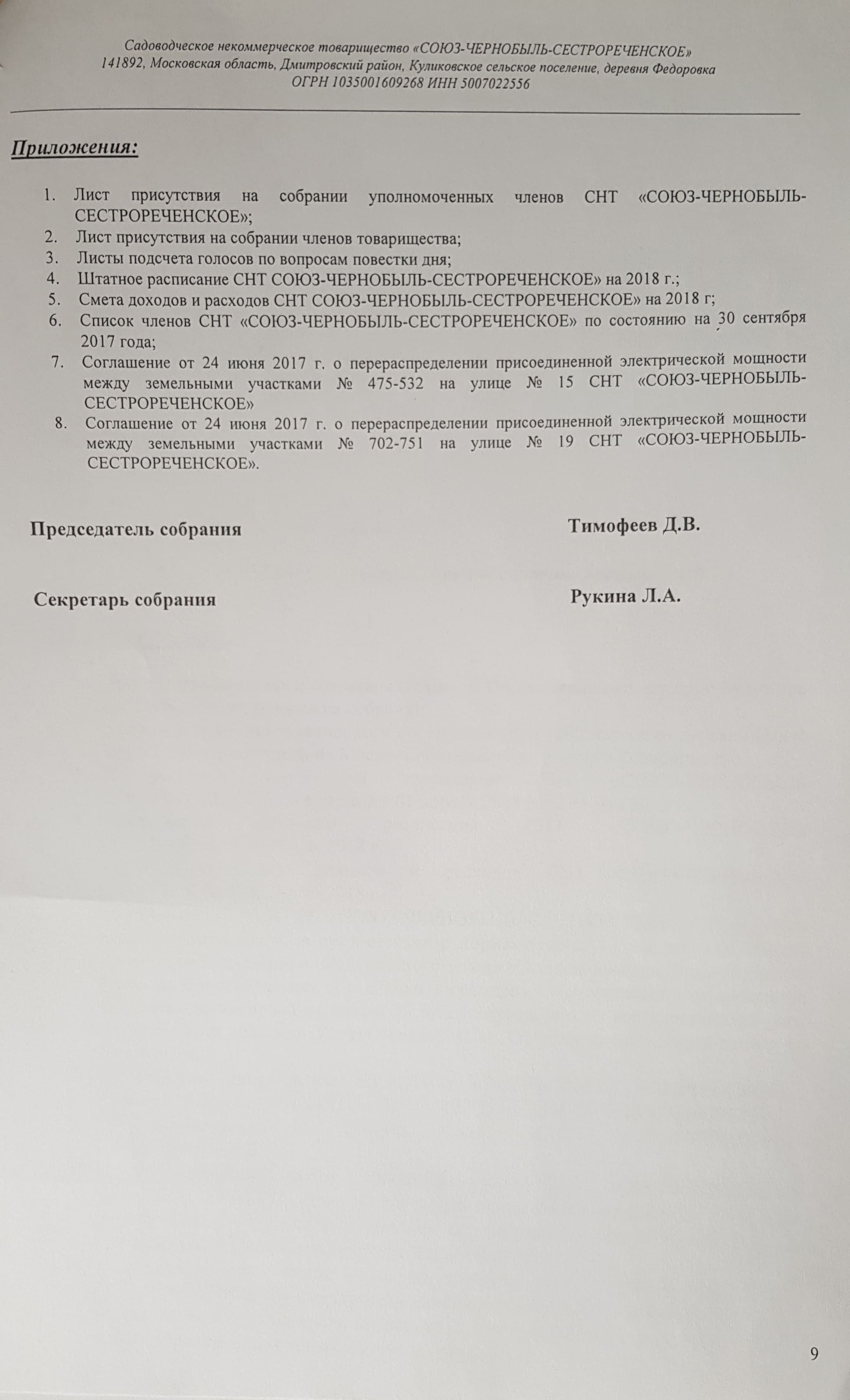 Протокол № 15 собрания уполномоченных членов СНТ "СОЮЗ-ЧЕРНОБЫЛЬ-СЕСТРОРЕЧЕНСКОЕ" от 30.06.2018 г.: