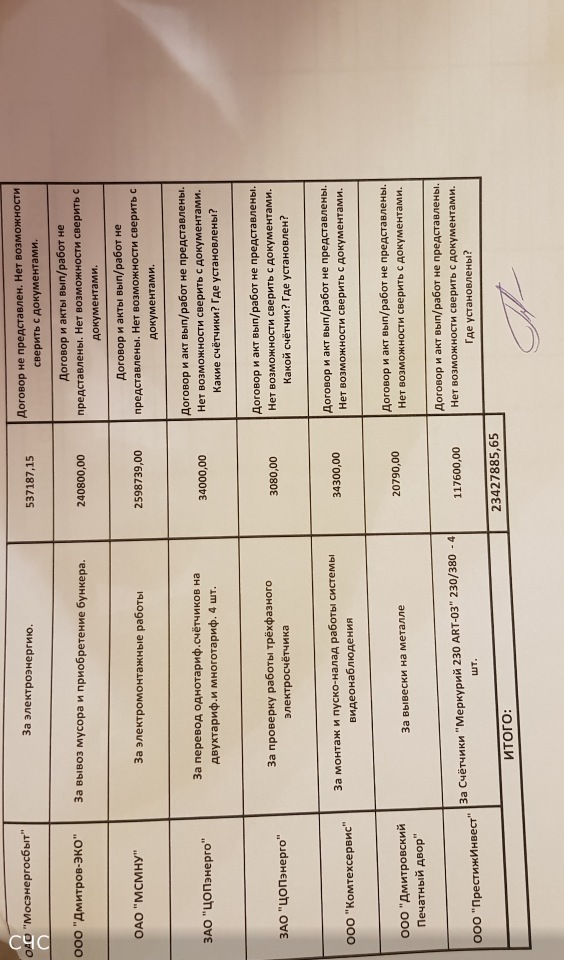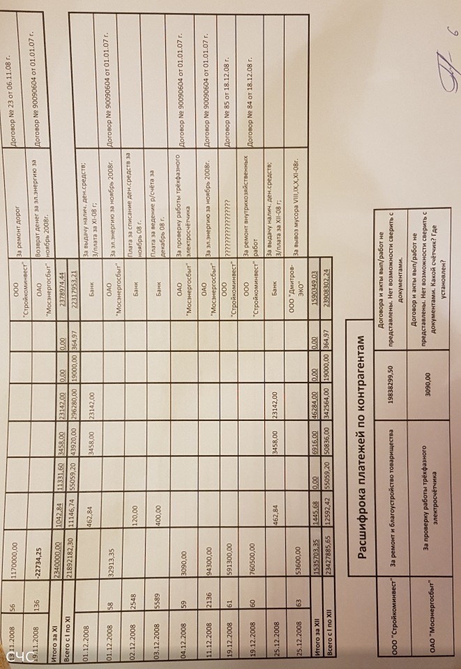 Ревизия финансово-хозяйственной деятельности за 2008 г. проведена в период с 17.08.2011 г. по 24.09.2011 г. Согласно Акта проверки, большинство документов Ревизионной комиссии не предоставлены. Из Приложения № 2 к Акту «Списание денежных средств по банку за 2008 г.» усматривается, что расход денежных средств составил 23 908 302,24 руб., из них нее подтверждено документами 23 427 885,65 руб. Акт подписан только одним членом Ревизионной комиссии – Бушуевой Е.С., с заключением о невозможности установить обоснованность и целенаправленность расходования денежных средств в 2008 г.