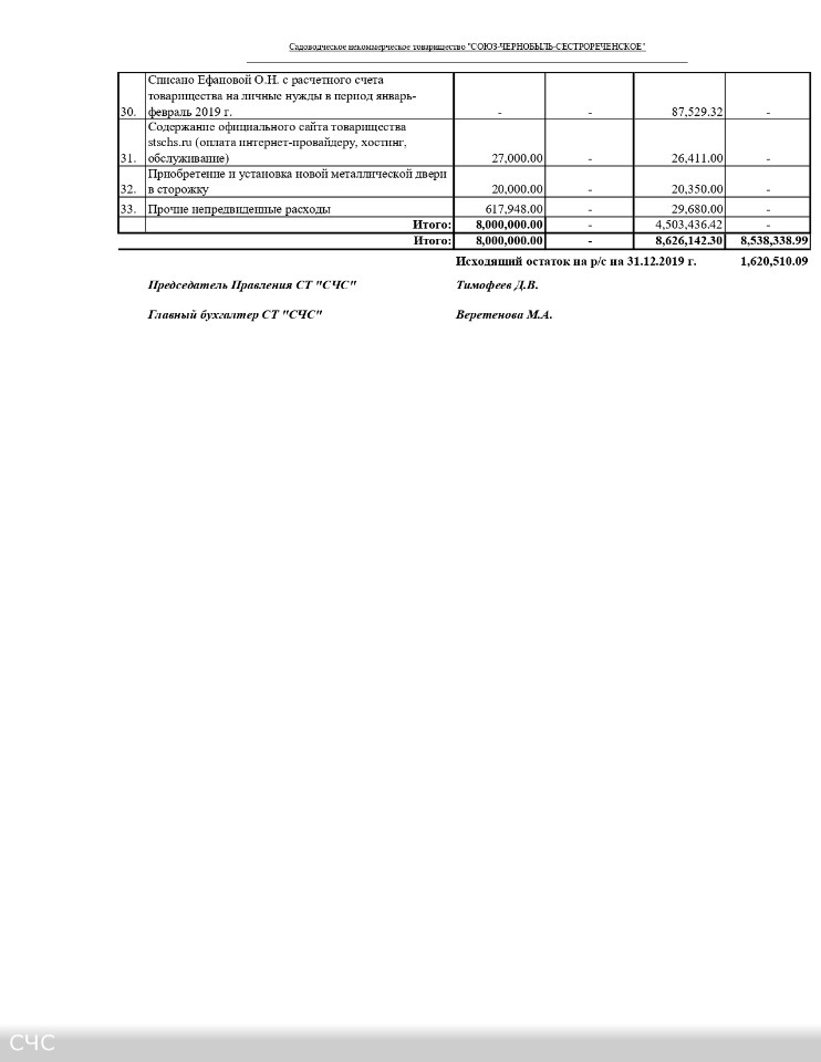 Отчет Правления СНТ "СОЮЗ-ЧЕРНОБЫЛЬ-СЕСТРОРЕЧЕНСКОЕ" о проделанных работах в 2019 году