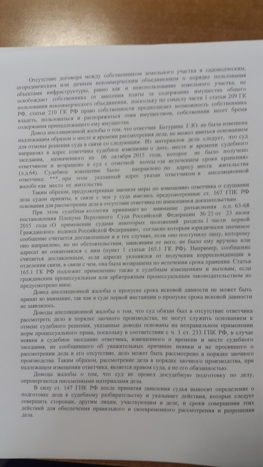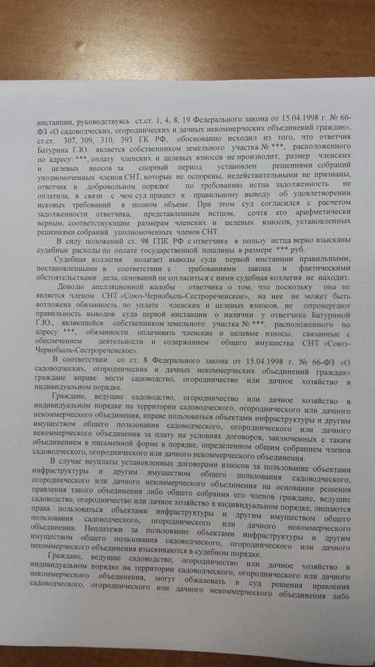Спасибо. Вот реальный пример того, о чем я Вам писал: садовод, полагающий, что платить взносы должен кто-то другой, бегал по судам с октября 2015 по август 2016 г.samtrest писал(а): Спасибо за исчерпывающий ответ! Могу только пожелать удачи в нелегкой борьбе с должниками и надеюсь, что все получится.