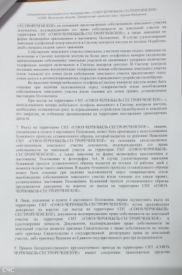 С Положением о порядке въезда, движения и парковки транспортных средств на территрории СНТ "СОЮЗ-ЧЕРНОБЫЛЬ-СЕСТРОРЕЧЕНСКОЕ" Вы можете также ознакомиться на сайте товарищества в разделе "Регламентирующие документы"