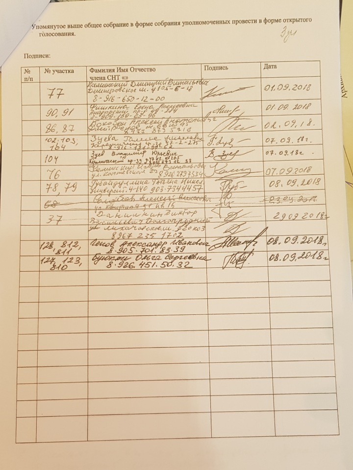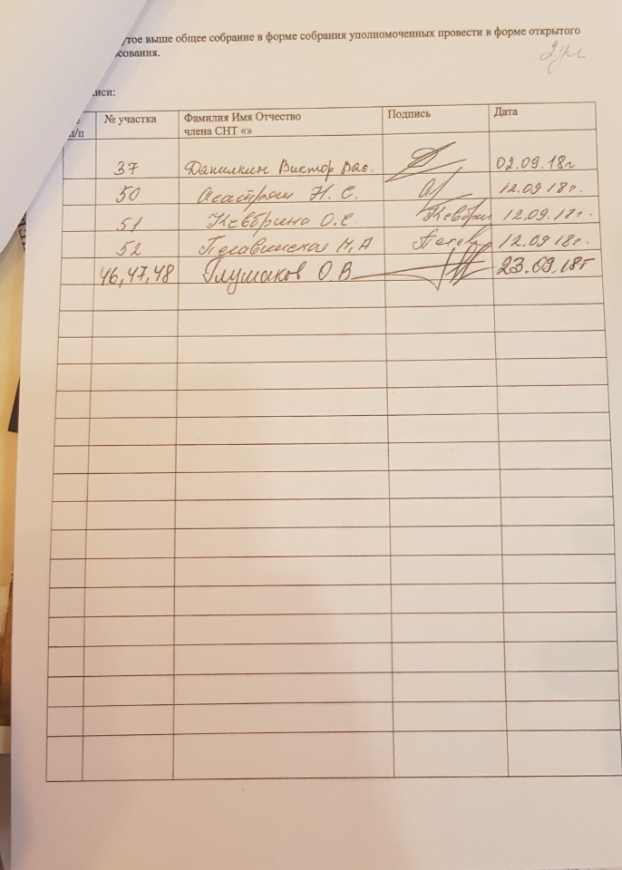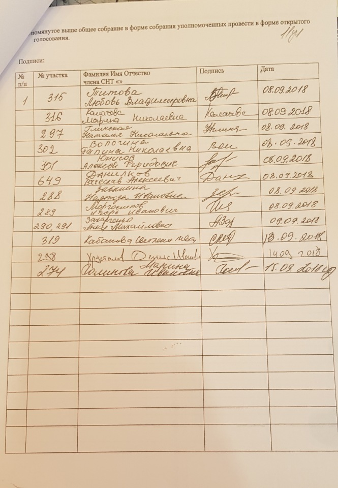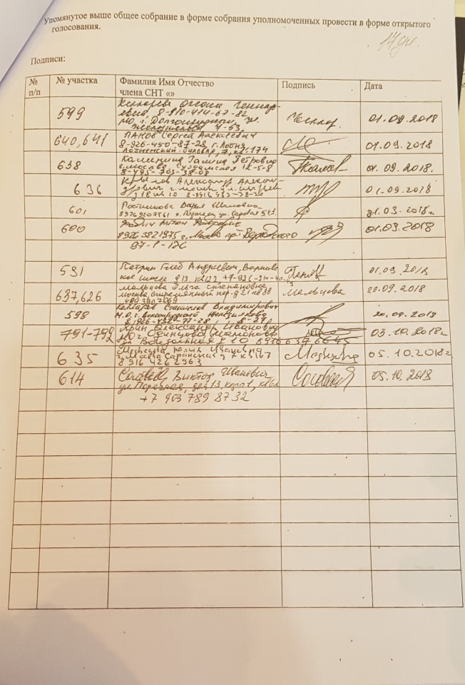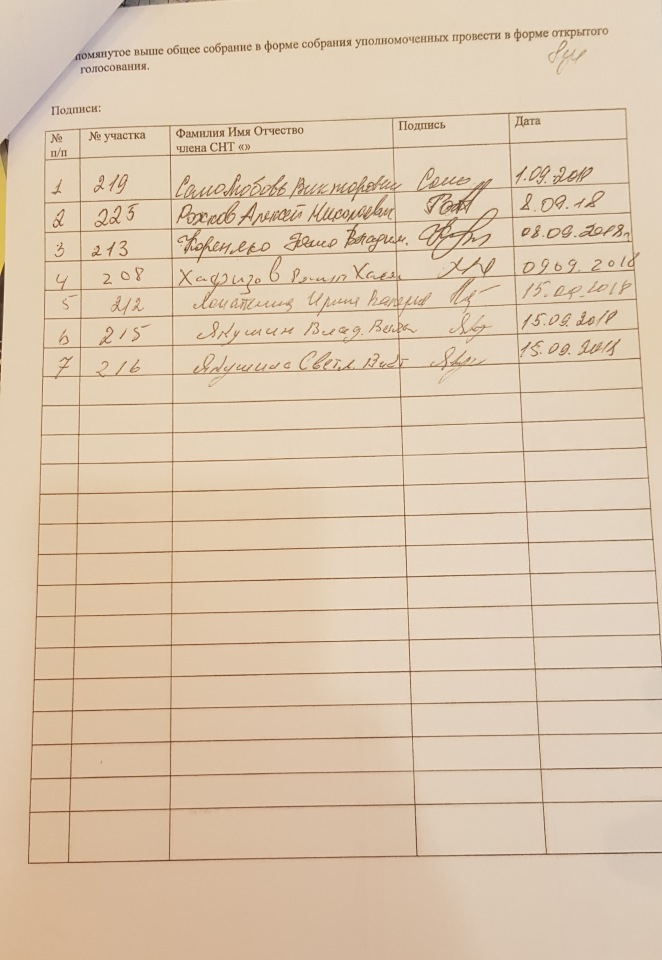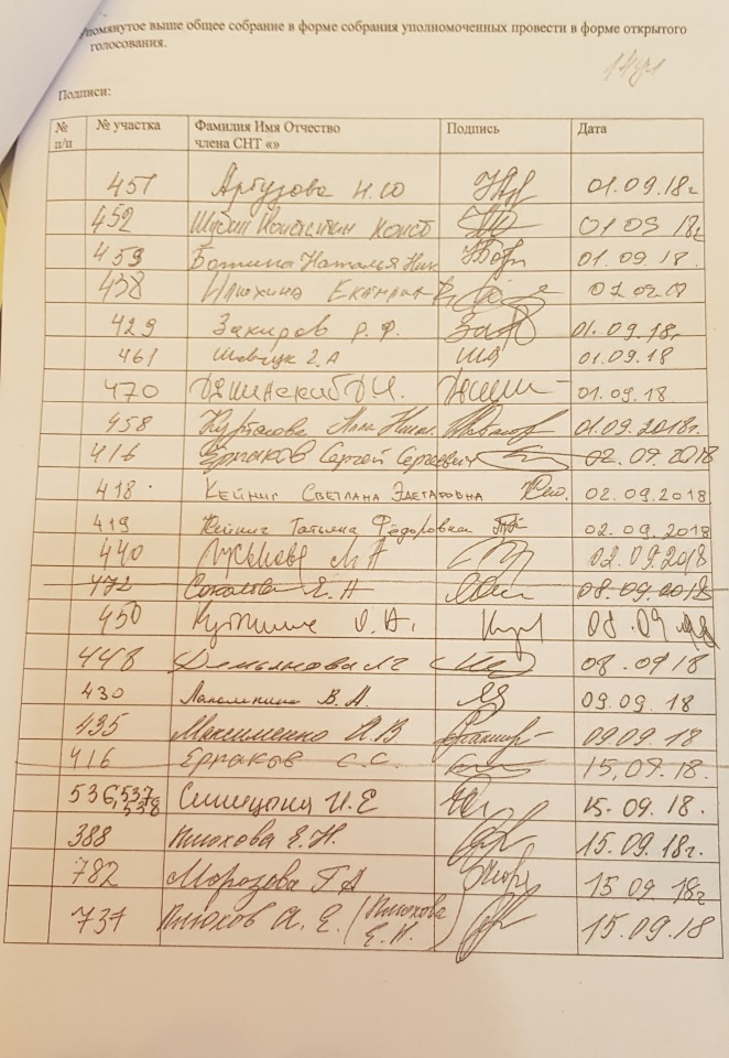 Решение садоводов, предоставленное Моргослеповым, по вопросу перевыбора Председателя: