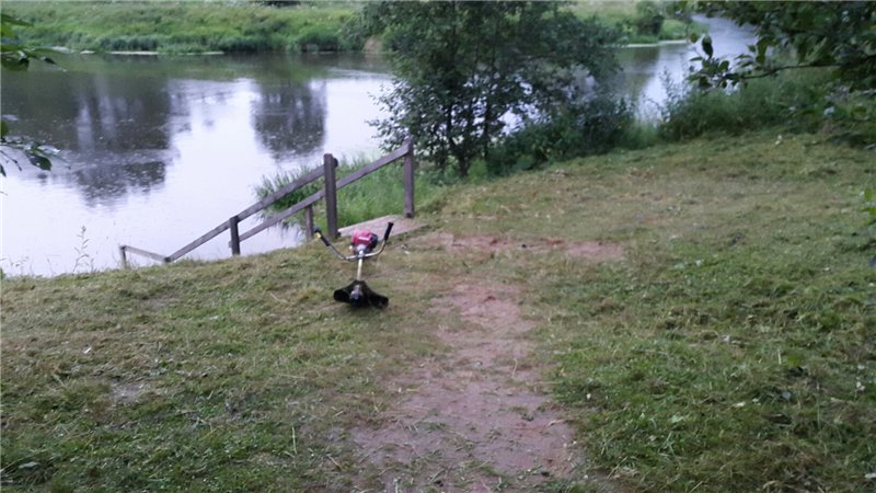 Обкашивание травы и уборка мусора на территории пляжа № 3.