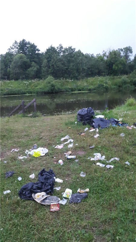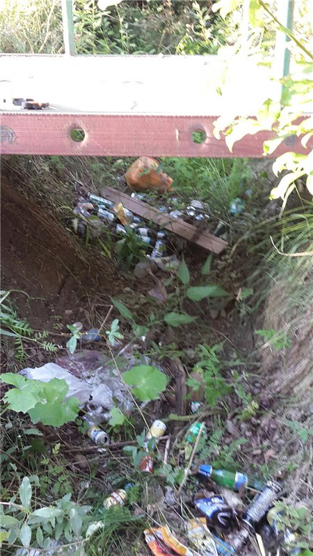 Мусор любезно разбросанный садоводами под мостиком с нежностью собран и доставлен до контейнера