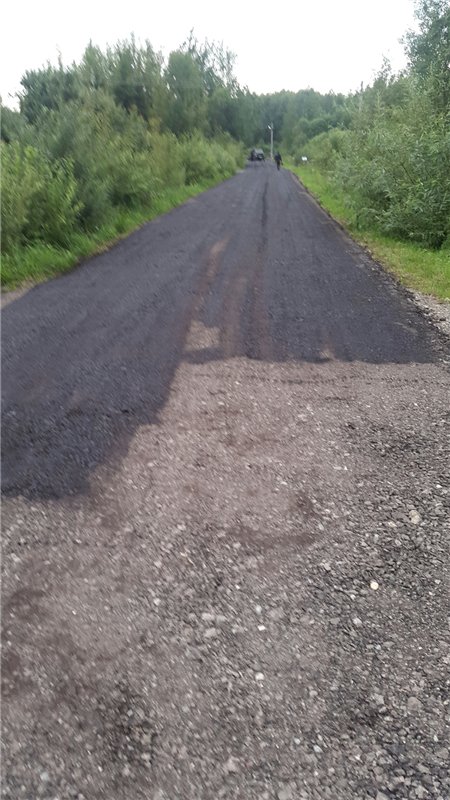 Ремонт центральной дороги от въезда до третьей улицы (устройство подстилающего и выравнивающих слоев из асфальтовой крошки, розлив вяжущих материалов, уплотнение).