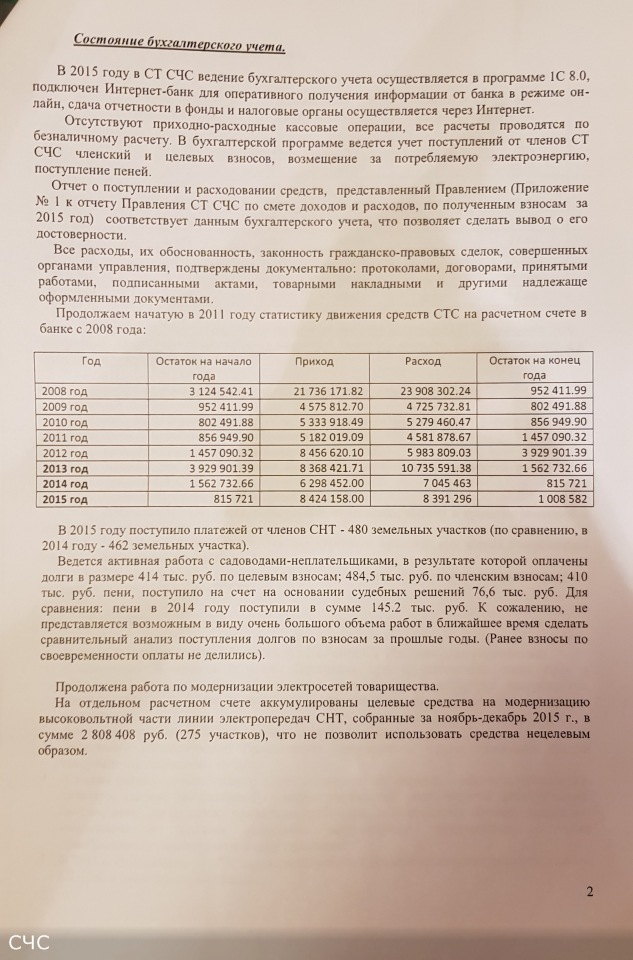Настоящая тема создана по решению Правления товарищества в целях раскрытия информации о результатах проверки Ревизионной комиссией финансово-хозяйственной деятельности СНТ "СОЮЗ-ЧЕРНОБЫЛЬ-СЕСТРОРЕЧЕНСКОЕ" за 2015 год.